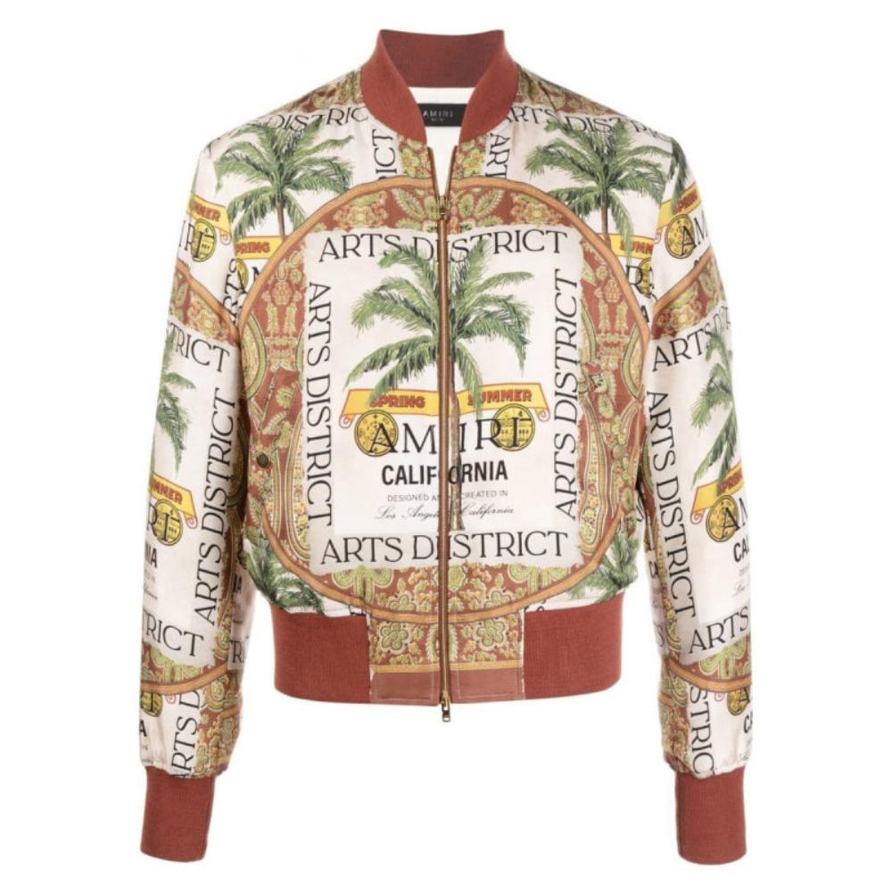 As an expert in fashion, I present to you the Amiri Rum Label Printed Jacket. Made from 100% cotton, it features a soft internal lining, rib-knitted collar, and cuffs, and rib-knitted hemline. With a YKK zipper closure and multiple pockets, this jacket seamlessly combines style and functionality.