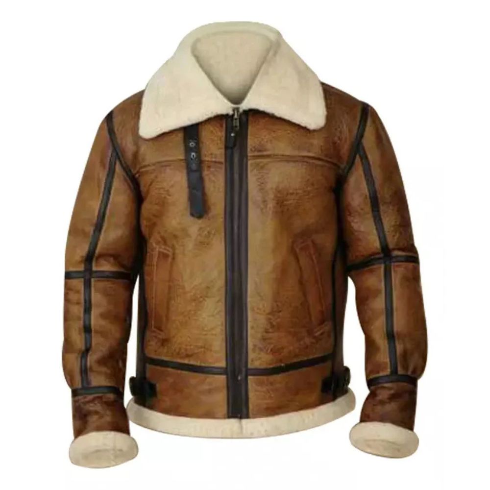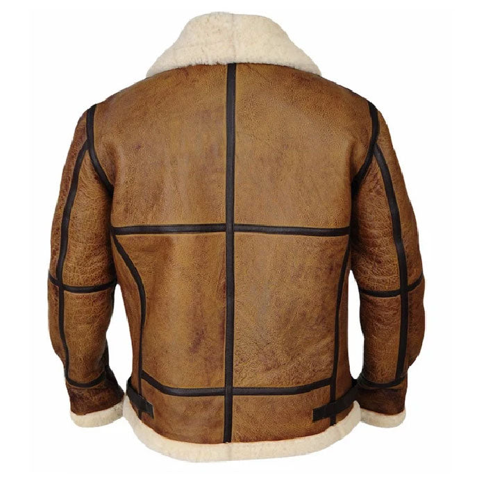 RAF B3 Distressed Brown Sherpa Fur Collar Genuine Sheepskin Leather Jacket For Men