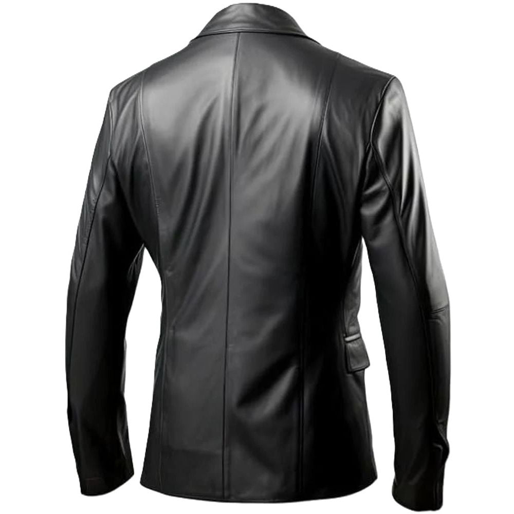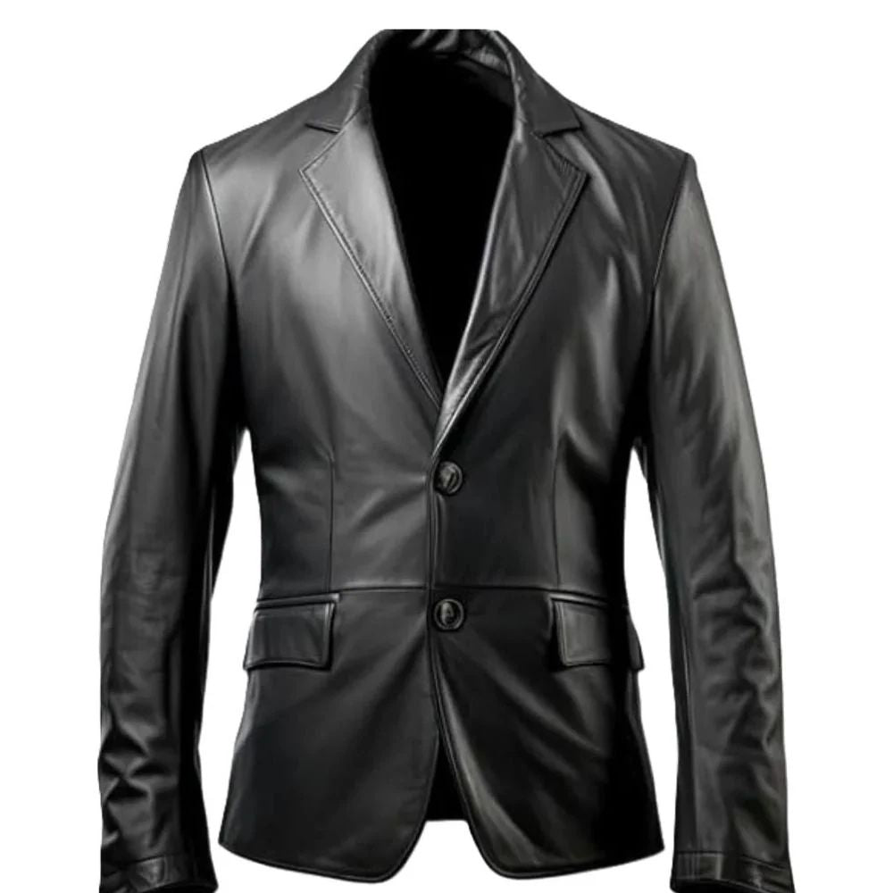This genuine charcoal sheepskin leather coat is a must-have for any man wishing to add a touch of vintage flair to his outfit. Because of its fine leather construction, it promises longevity and has an opulent feel. The classic two-button fastening, notched lapel and sleek design create a chic look that works well for both day and night. This coat's attention to detail is evident in its precise stitching and clean lines. The soft leather finish gives the piece a polished look, while the slight roughness adds depth and character. The internal lining, which is probably made of a smooth material like viscose or satin, guarantees comfort and mobility.
