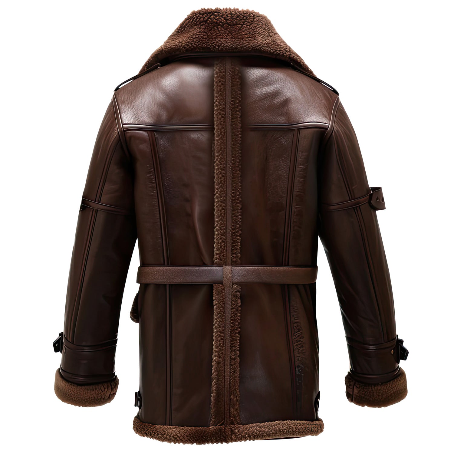 Explore the pinnacle of fashion and cosiness with our distressed leather aviator jacket for guys. This classic piece is made of real leather and has a plush faux shearling lining that provides comfort and style. A faux fur collar and belted waist offer a hint of rugged elegance to this vintage-inspired design. This adaptable jacket is the ideal option for every situation, whether you're adventuring across the city or spending a comfortable evening out. Shop now to add this important piece to your wardrobe.