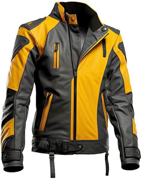 Mustard and Charcoal Black make a striking color combination on this tough and fashionable men's leather jacket. A dash of boldness is added by the stand-up collar, and the slim-fit style gives it a sleek, contemporary appearance. Multiple pockets and a zip-up closure in the shape of a motorcycle provide both practicality and flair. Because the jacket is made of premium sheepskin leather, it will last a long time and feel opulent. Ideal for motorcyclists, stylish people, or anyone wishing to stand out from the crowd with their clothing.