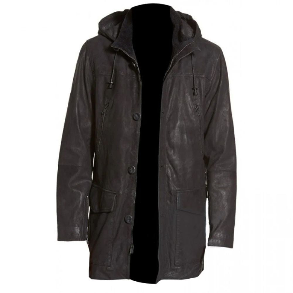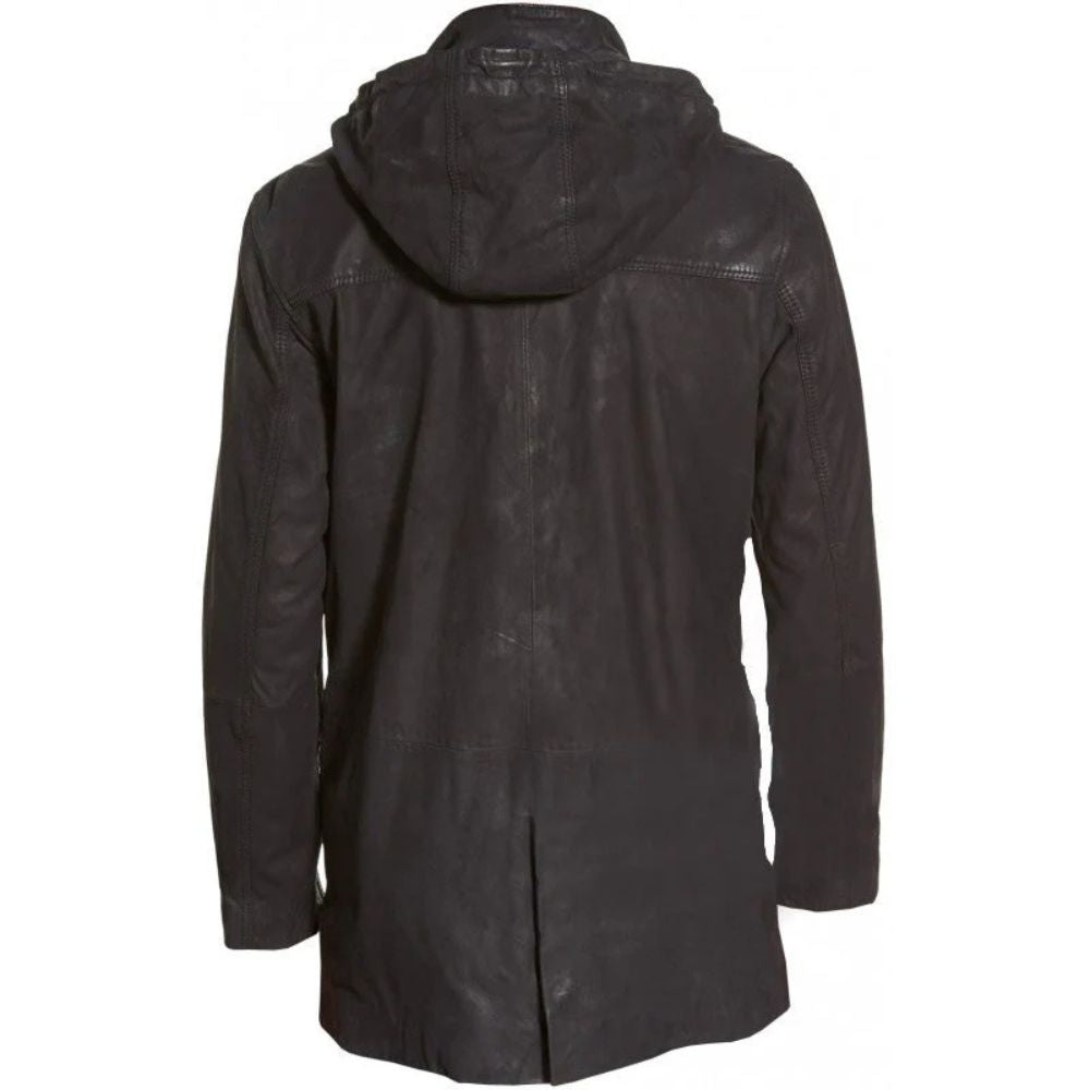 This mid-thigh-length long parka coat is the culmination of a mix of convention and modern trench look. The classic men's leather coat outline is edgy with present-day subtle elements like the bothered calfskin wrap-up and the detachable hood. It's a flexible piece that can be dressed up or down, making it perfect for any formal or informal occasion. The bothered calfskin includes a rough charm, whereas the detachable hood offers common sense and a fashionable look. The custom-fitted fit guarantees a smooth and modern look. Whether you're touring the city or going to a formal occasion, this is the ideal way to make an explanation. It's an immortal piece that will never go out of fashion.