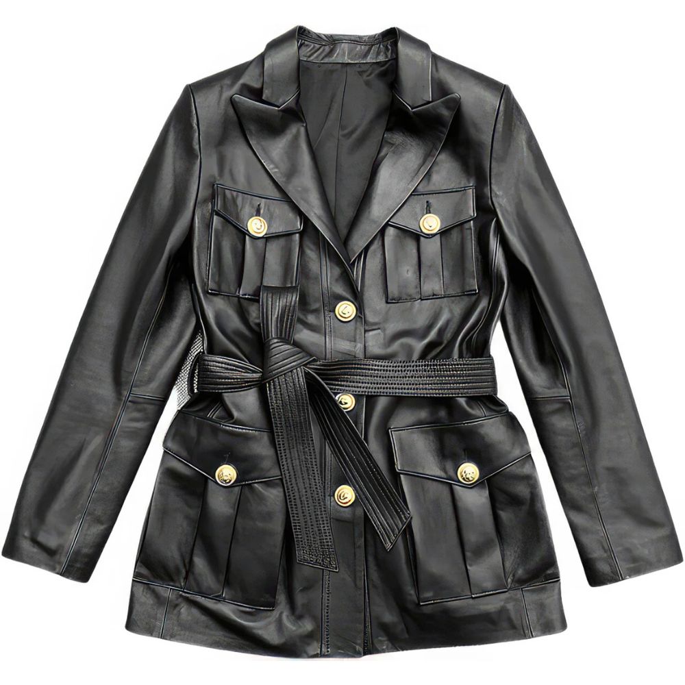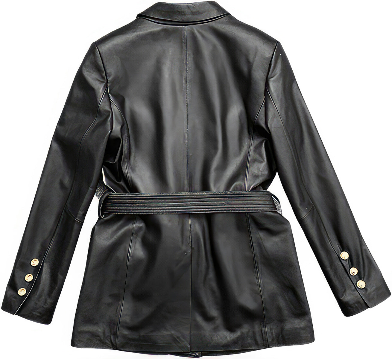 Our Women's Black Genuine Sheepskin Leather Jacket can help you update your outfit. This coat's exceptional sheepskin leather construction ensures long-lasting comfort and durability. It has a front button clasp for a snug fit and ease of wear. With several utility pockets, it provides useful storage for your daily necessities. The waist belt adds an additional touch of refinement and refines the coat's design. This single-breasted jacket, which is ideal for casual wear, has an edgy, street-smart design that is inspired by vintage motorcycle attire. This chic leather coat will turn heads whether you're hitting the town or the roads.
