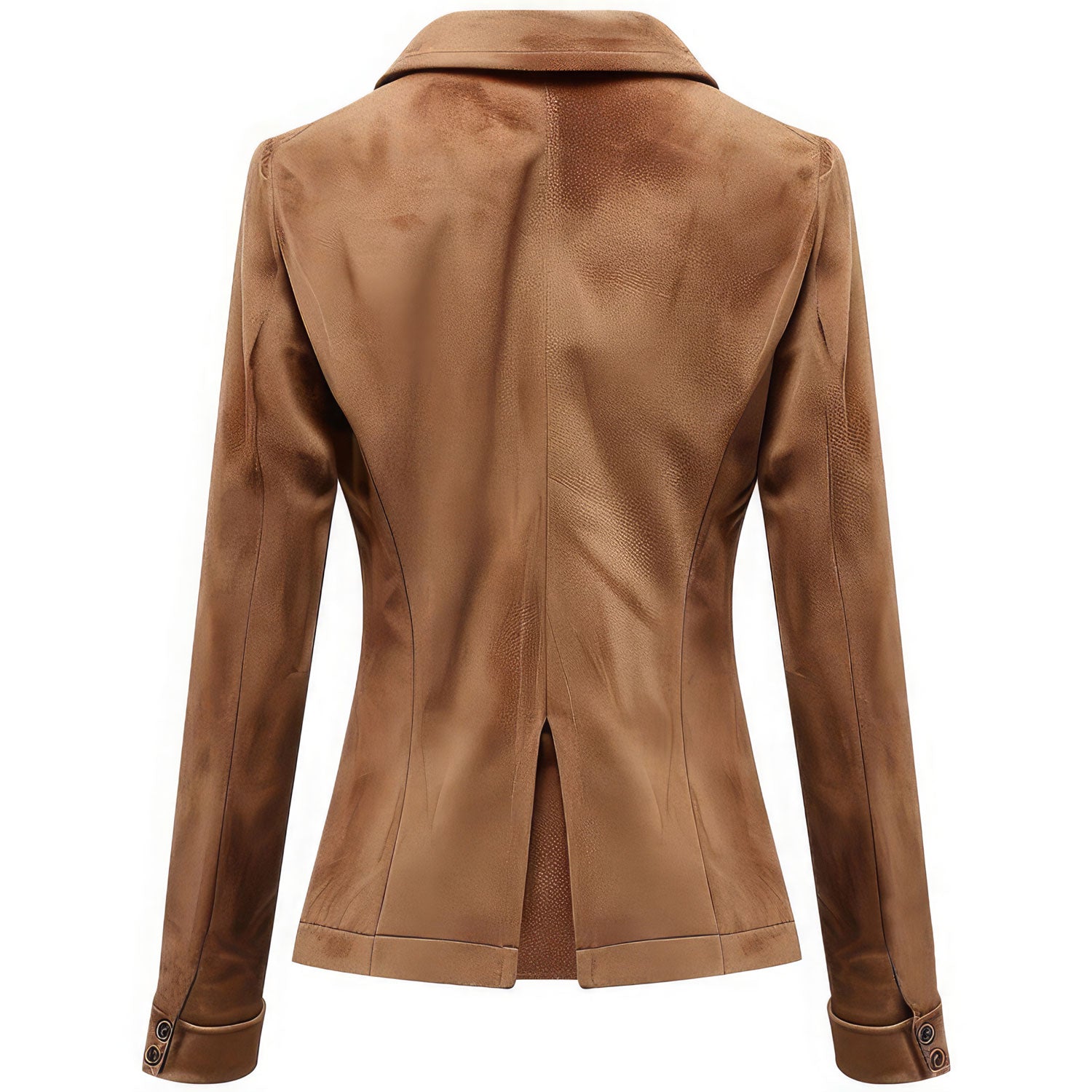 Women’s Genuine Soft Slim-fit Formal Outfit One Button Sleek Single Vent Casual Leather Blazer.